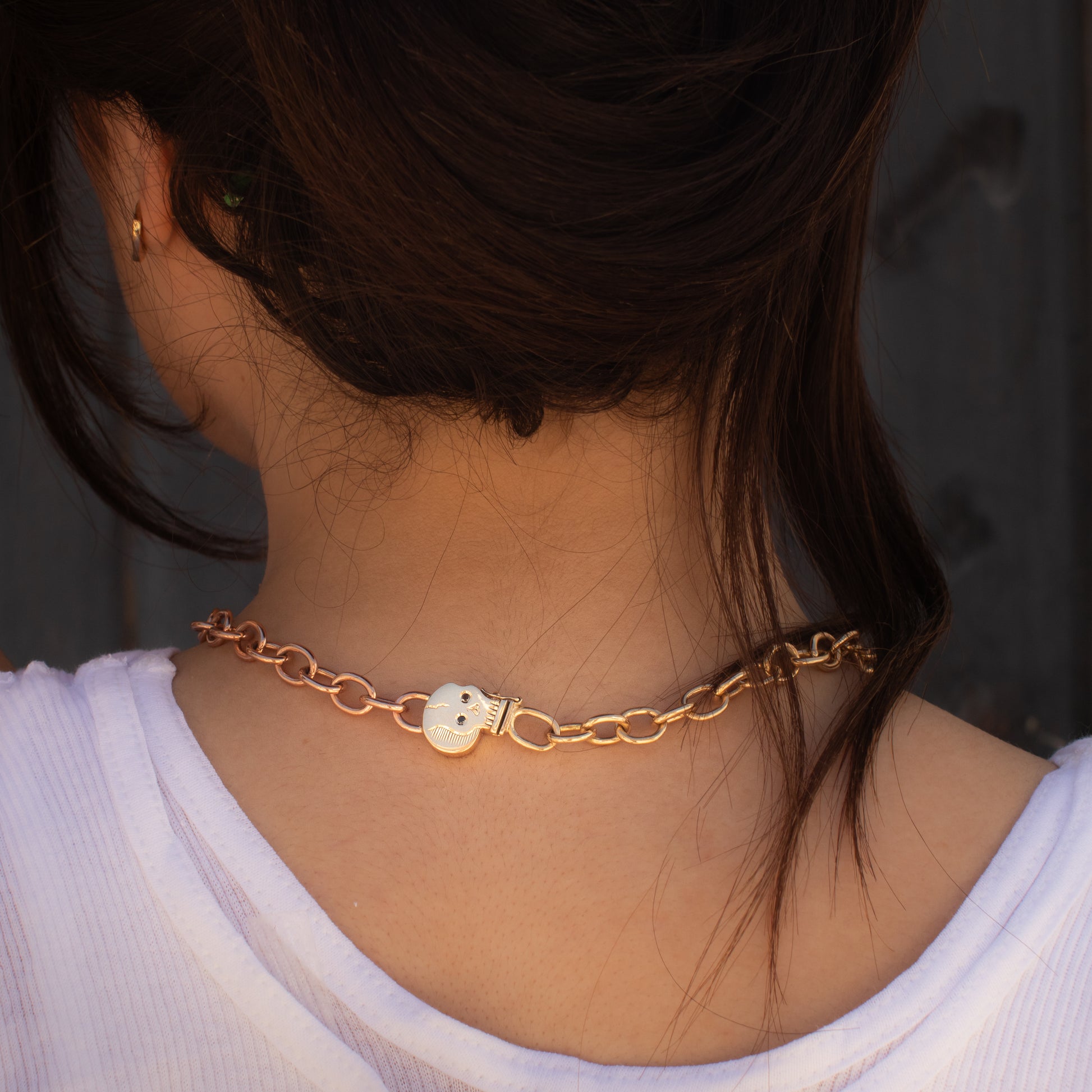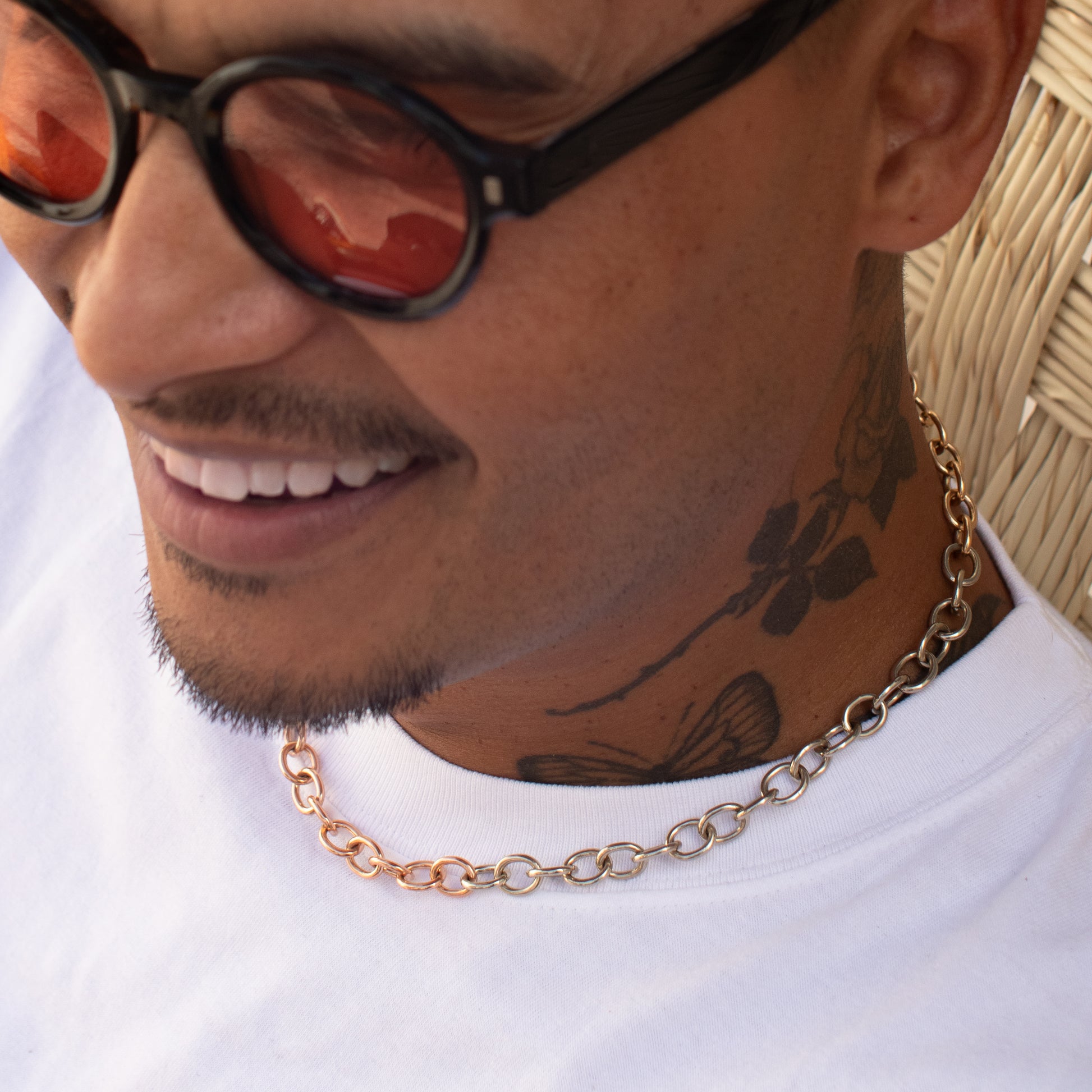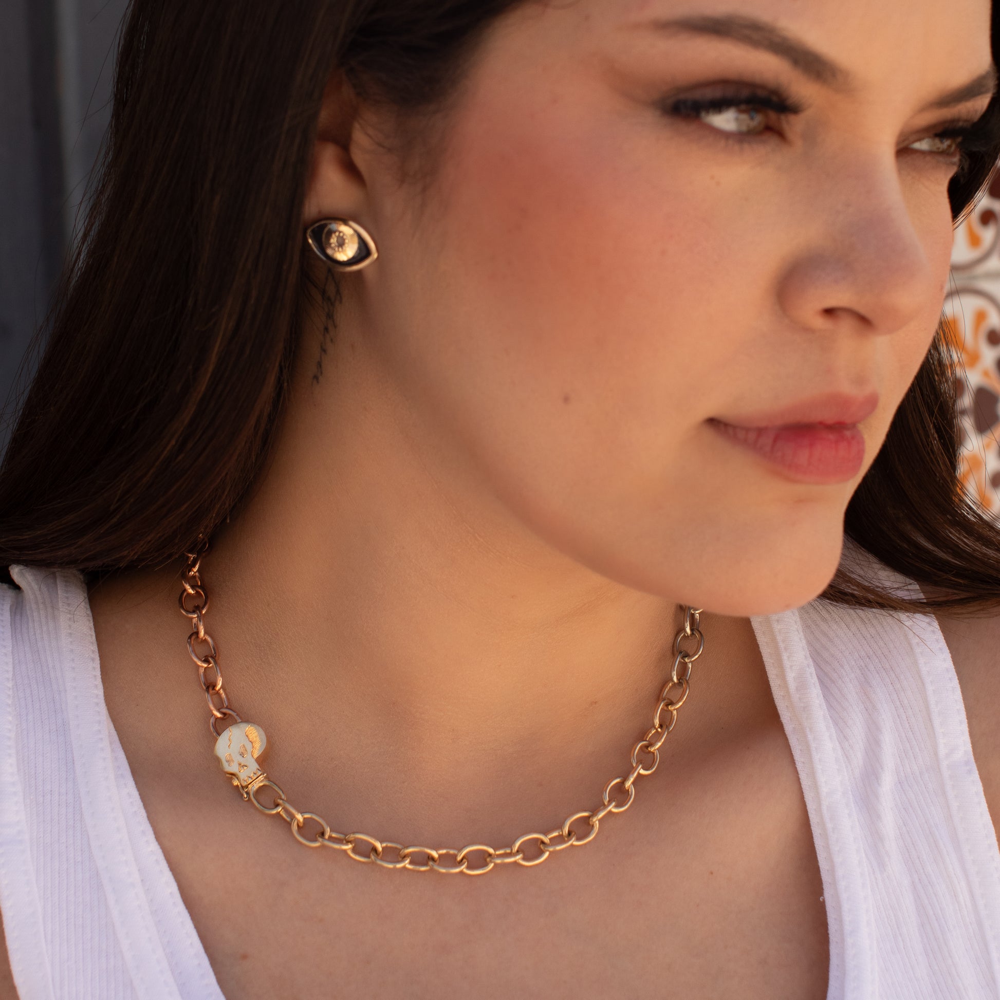Tres Oros is a 8.5mm width chain made with 3 different classic solid 14k gold colors Rose, White and Yellow with oval links cable style and our original signature Skull Clasp that doubles as charm. No doubt your the one standing out.